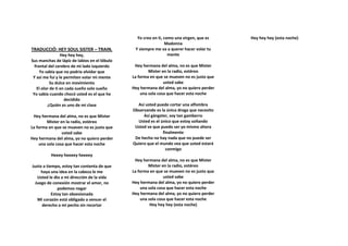 El documento presenta las letras de dos canciones de Train, "Hey Soul Sister" y "I Will Always Love You". Ambas canciones expresan sentimientos de amor y apego hacia una pareja romántica, prometiendo nunca olvidarla o dejar de amarla.