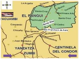 En 1991, el pueblo de El Pangui fue elevado a la categoría de cantón por el gobierno de Rodrigo Borja, destacándose por su biodiversidad y cultivos como maíz y cacao. Atrae el turismo con lugares naturales como la cascada de Machinatza y una reserva con gran diversidad biológica, además de su historia y cultura local. Con una población educativa activa y diversas actividades al aire libre, El Pangui se presenta como un destino rico en atracciones tanto ecológicas como culturales.