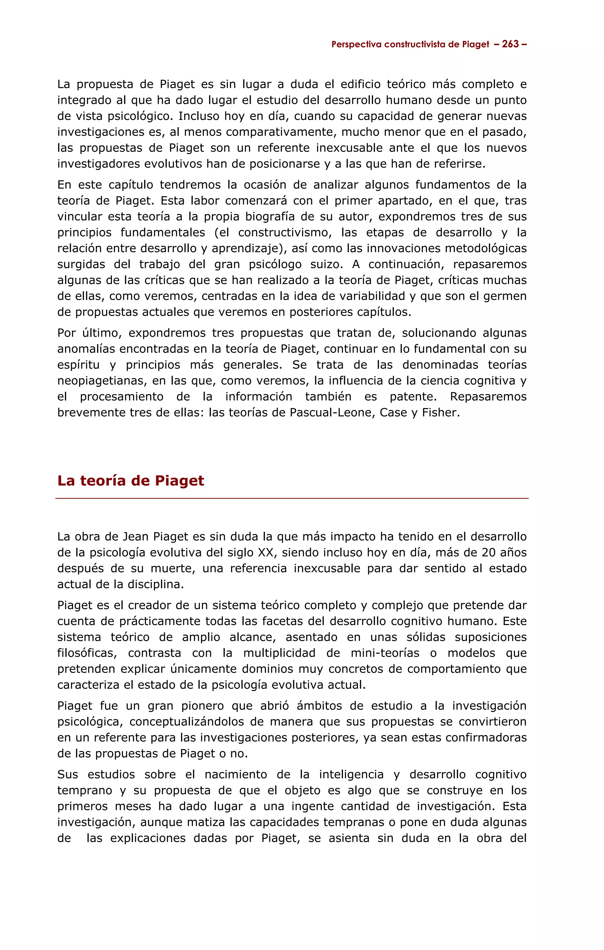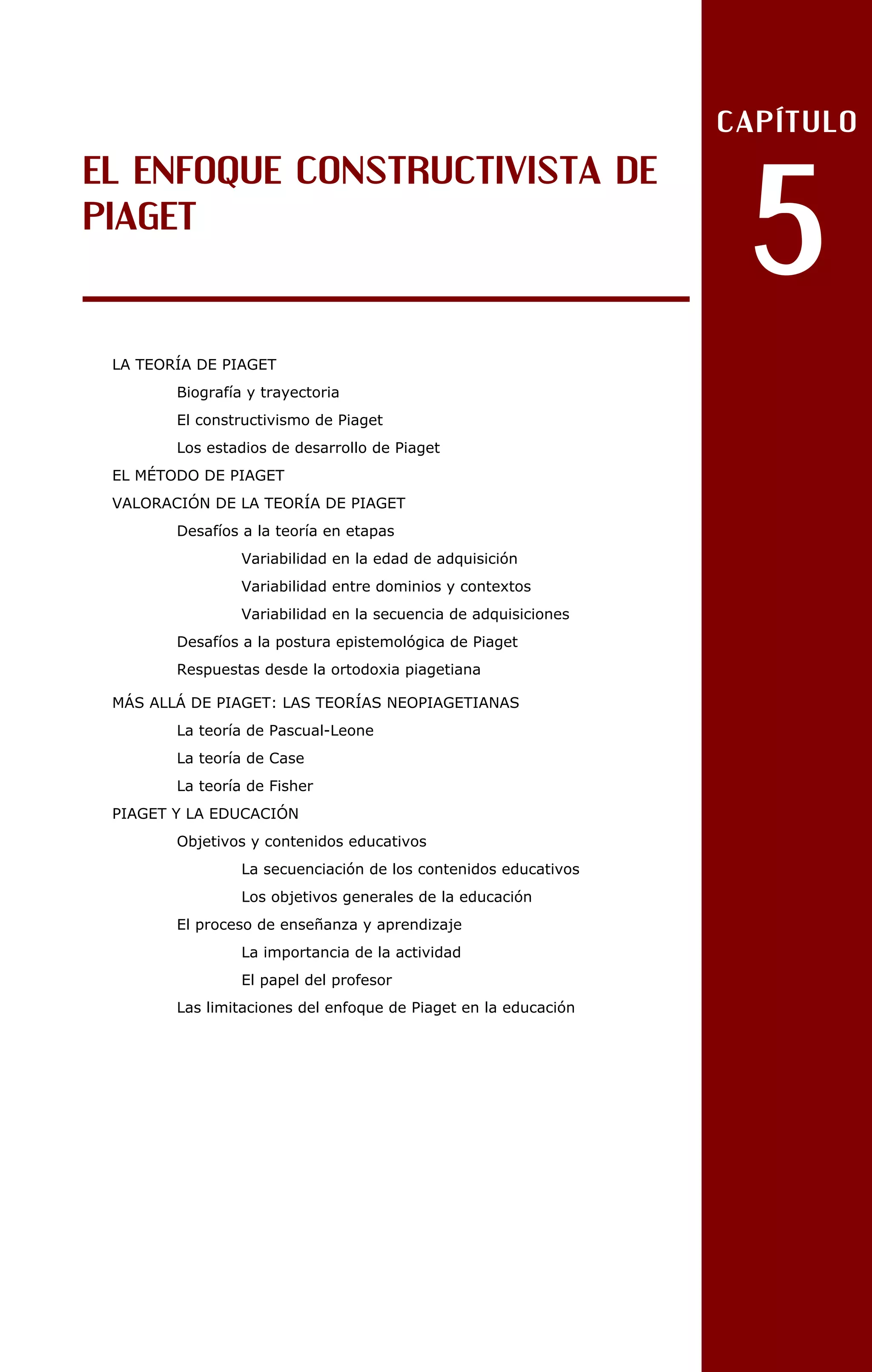 El documento resume la teoría del desarrollo cognitivo de Jean Piaget, incluyendo su biografía, los principios fundamentales de su enfoque constructivista y de las etapas de desarrollo, las críticas a su teoría y teorías posteriores influenciadas por él. Piaget fue un pionero cuya teoría del desarrollo en etapas ha tenido un gran impacto y sigue siendo una referencia importante a pesar de recibir algunas críticas sobre su enfoque de las etapas y su postura epistemol
