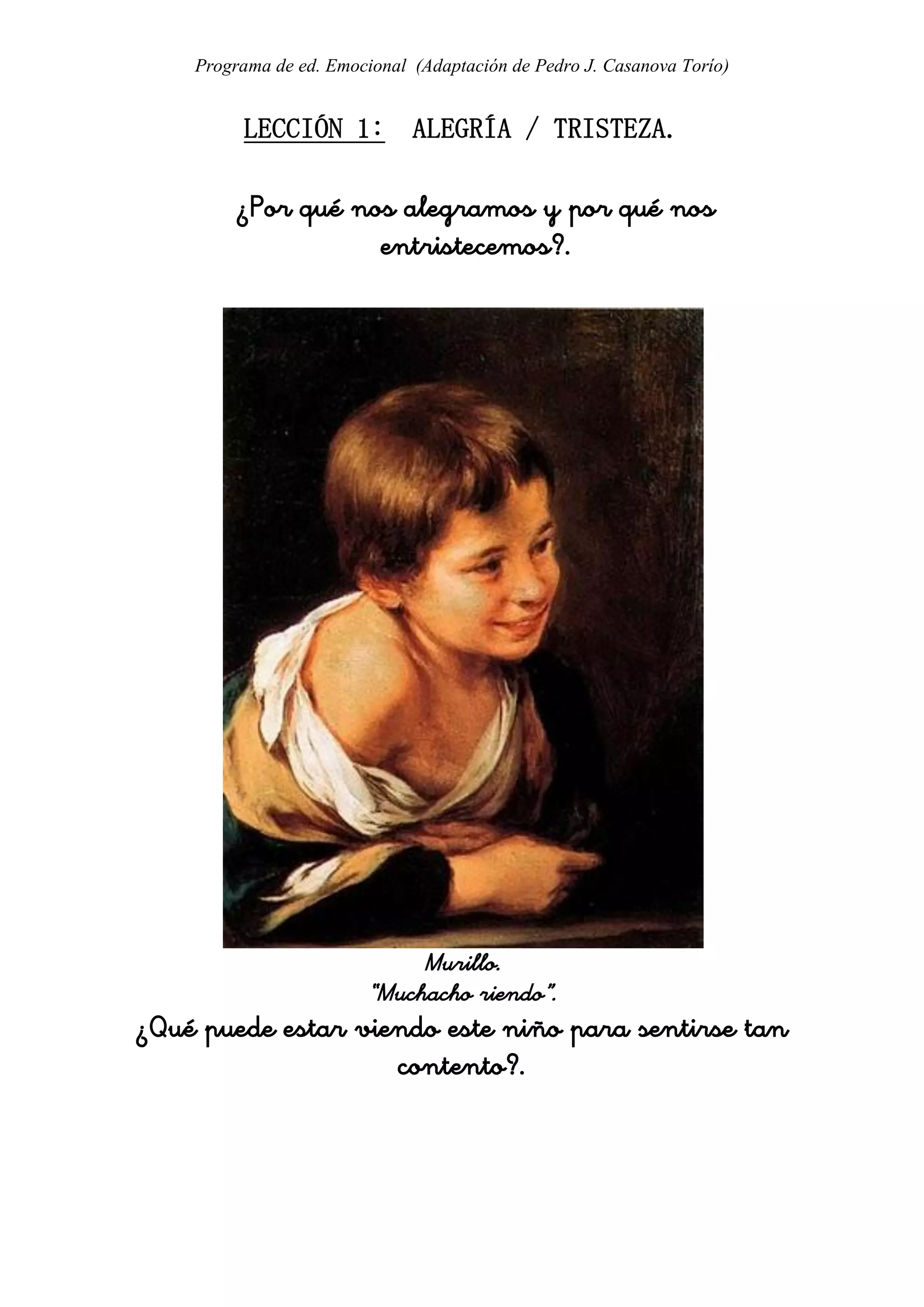 El documento presenta un programa de educación emocional centrado en la lección sobre la alegría y la tristeza, destacando las diferencias entre emociones, estados de ánimo y rasgos de personalidad. Se incluyen actividades para ayudar a los estudiantes a identificar y expresar sus emociones a través de ejemplos y comparaciones entre sentimientos similares y opuestos. Además, se explora cómo cada sentimiento tiene una causa, fomentando la comprensión emocional en diferentes situaciones.