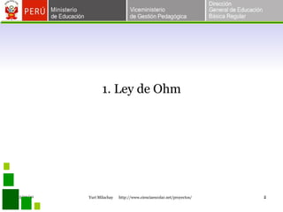 El documento resume cuatro principios básicos de la electricidad y el magnetismo: 1) La ley de Ohm, que establece la relación entre la corriente, el voltaje y la resistencia en un conductor. 2) La ley de Ampere, que describe el campo magnético generado por una corriente eléctrica. 3) La ley de Faraday, que explica la inducción electromagnética. 4) La ley de Lenz, que establece que la corriente inducida se opone al cambio que generó la inducción. El documento también incluye activ