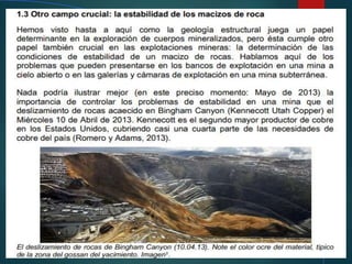 Este documento presenta una introducción a la geología y sus ramas principales. Explica que la geología estudia la composición y evolución de la corteza terrestre y los fenómenos geológicos. Describe algunas de las ramas principales como la geología estructural, geoquímica, geomorfología, geofísica, hidrogeología y sedimentología. También cubre ciencias relacionadas como la biología, química, matemáticas y estadística. Finalmente, discute la importancia de la