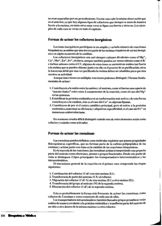 1) Los cofactores enzimáticos son moléculas necesarias para que las enzimas catalicen reacciones metabólicas. 2) Existen dos tipos de cofactores: iones inorgánicos y compuestos orgánicos llamados coenzimas. 3) Las coenzimas transportan grupos funcionales entre enzimas o sitios dentro de una misma enzima, catalizando reacciones de oxidación-reducción.