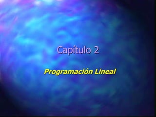 Este capítulo presenta el modelo de programación lineal y cómo puede usarse para resolver problemas de optimización. Explica los conceptos clave como variables de decisión, restricciones, función objetivo y solución óptima. También describe técnicas como el análisis de sensibilidad y el método gráfico para encontrar la solución óptima. Finalmente, analiza cómo los cambios en los parámetros del modelo pueden afectar la solución óptima.