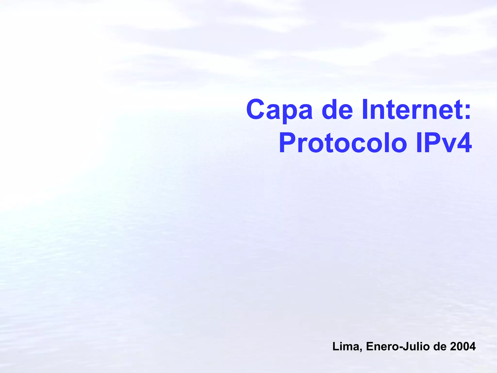 El documento describe el protocolo IPv4, incluyendo campos como la versión, longitud de encabezado, identificador, tiempo de vida, direcciones de origen y destino. Explica conceptos como la fragmentación, clases de direcciones, subredes y opciones de encabezado como registro de rutas y sello de hora.