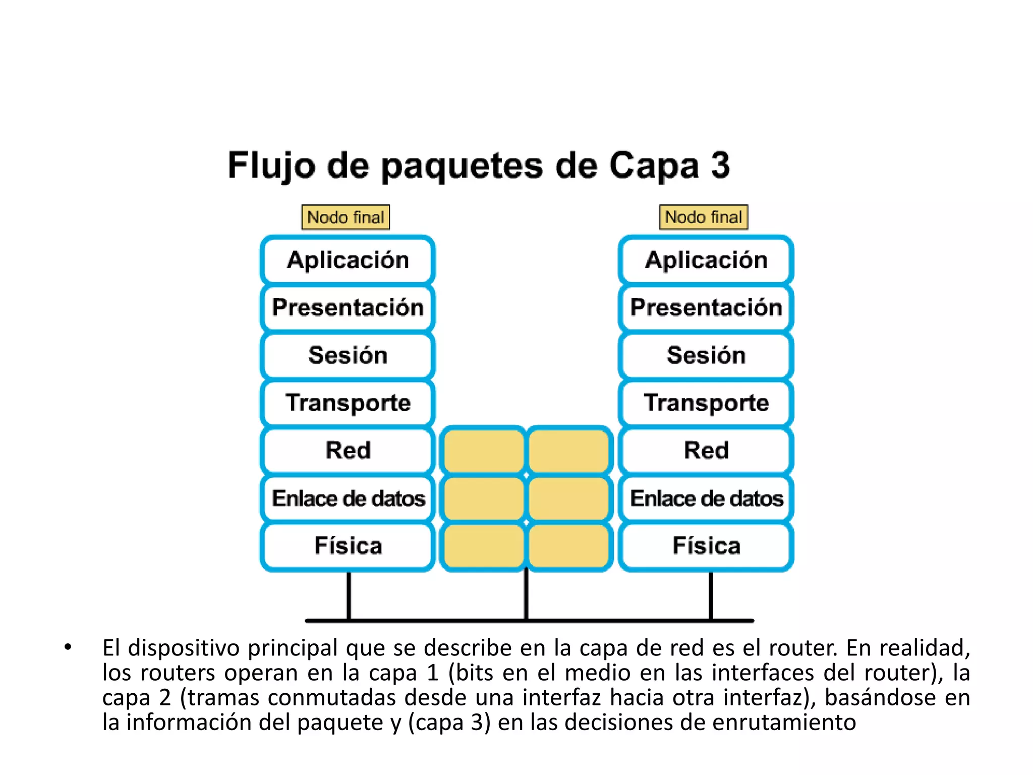 Los routers operan en las capas 1, 2 y 3 del modelo OSI, conmutando paquetes entre redes basándose en las direcciones de la Capa 3 como las direcciones IP. Los routers usan esquemas de direccionamiento dinámicos como DHCP para asignar direcciones IP a los dispositivos de forma automática, permitiendo la comunicación entre redes.