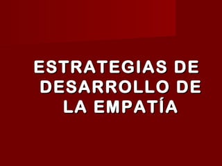 El documento define la empatía como la capacidad de apreciar los sentimientos y emociones de otra persona. Explica que la empatía es fundamental para la comunicación interpersonal y el establecimiento de diálogos porque permite comprender profundamente el mensaje del otro. También describe la empatía como una habilidad para inferir los pensamientos y sentimientos ajenos que genera sentimientos de simpatía y comprensión.