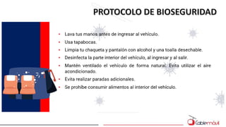 1. El documento describe los requisitos y buenas prácticas para conducir de manera segura, incluyendo tener documentos al día, no conducir bajo influjo de sustancias, y cumplir con las normas de tránsito.