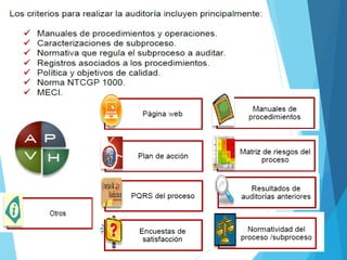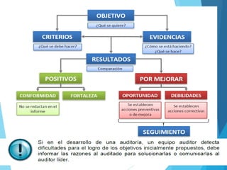 El documento proporciona información sobre una capacitación para auditores de sistemas de gestión de calidad. Explica conceptos clave como objetivos de auditoría, técnicas de auditoría e informes de hallazgos. También ofrece consejos para que los auditores agreguen valor a través de un enfoque en los procesos, resultados y ciclo de mejora continua de una organización.