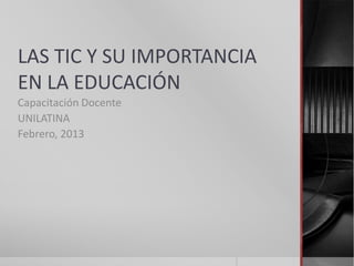 Las TIC son tecnologías que permiten reunir, almacenar, procesar y transmitir información en cualquier formato. Pueden estar vinculadas a la educación al permitir la alfabetización digital de los estudiantes, aumentar la productividad e innovar las prácticas docentes. Sin embargo, existen limitaciones como fallas técnicas y baja velocidad de conexión.