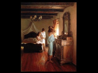 Este documento describe al pintor realista español Antonio C. Guzmán Capel. Aunque nació en Tetuán, se trasladó a Palencia donde desarrolló su carrera pictórica de forma autodidacta, realizando su primera exposición a los once años. Pinta escenas interiores y cotidianas con influencia de Vermeer y Velázquez, enfocándose en los efectos de la luz. También explora el realismo mágico y escenas taurinas. Se espera que la magnitud de su obra y su proyección internacional