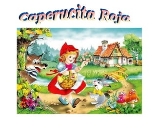 Caperucita fue enviada por su madre a llevar una cesta de miel y tortitas a la casa de su abuelita. En el bosque se encontró con el lobo, que corrió más rápido para llegar antes a la casa de la abuelita. El lobo se hizo pasar por la abuelita y cuando llegó Caperucita le dijo que tenía ojos, orejas, boca y nariz más grandes, a lo que el lobo respondió que eran para verla, oírla, comerla y olerla mejor. Finalmente Caperucita