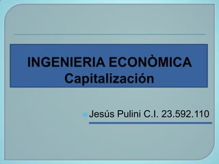 El documento explica las diferencias entre la capitalización simple y la capitalización compuesta. La capitalización simple solo genera intereses sobre el capital inicial, mientras que la capitalización compuesta considera que los intereses generados se capitalizan y generan nuevos intereses. También describe cómo se calcula la capital final en la capitalización compuesta usando una progresión geométrica.
