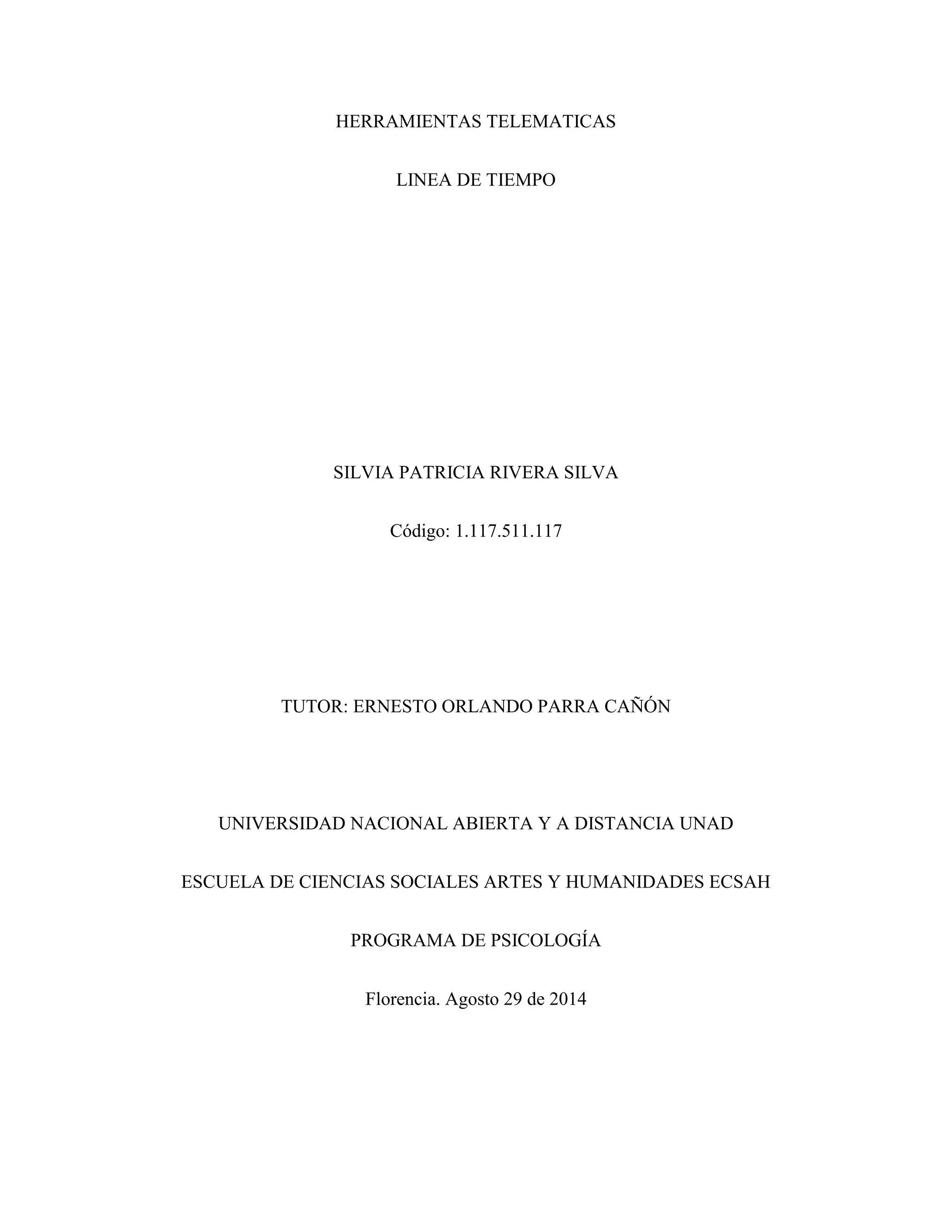 Este documento presenta una línea de tiempo que resume la evolución de Internet desde su creación en 1969 hasta el presente. La línea de tiempo describe eventos clave como el desarrollo del correo electrónico en 1971, la creación de la World Wide Web en 1991, el surgimiento de sitios populares como Google, Wikipedia y Facebook entre 1998 y 2004, y el auge de Internet móvil y las redes sociales después del 2000. El documento concluye que la línea de tiempo ilustra cómo Internet se ha vuelto integral en la vida cotidiana a medida que avanza la tecnología