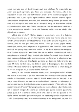 Un hombre llamado Pedro Alberto Jiménez fue encontrado muerto con signos de tortura. La causa de su muerte está siendo investigada por un juzgado. Un conocido de la víctima, luego de enterarse por el diario, expresa su confusión y dolor por la muerte de su amigo, y recuerda los buenos momentos que pasaron juntos.