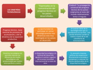 2) Estas asimetrías se expresan en la concentración del progreso técnico y capital en países desarrollados, dificultando la participación de países en desarrollo en sectores dinámicos.