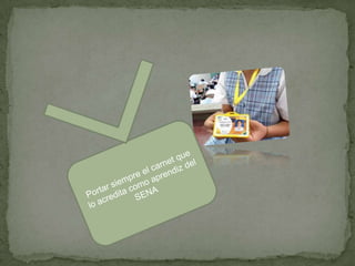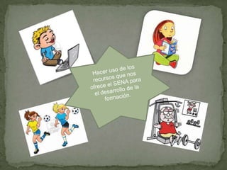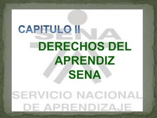 El documento habla sobre los derechos y responsabilidades de los estudiantes en el SENA. Los estudiantes tienen derecho a ser informados sobre el funcionamiento y programas del SENA, disfrutar de los beneficios de manera responsable, y recibir orientación académica y actitudinal. También tienen derecho al debido proceso y ser escuchados respetuosamente, así como exigir un alto nivel académico con estrategias efectivas.