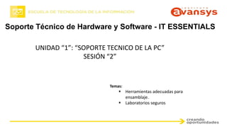 Este capítulo cubre procedimientos de laboratorio seguros, el uso adecuado de herramientas y la eliminación correcta de componentes de PC. Se enfatiza la importancia de trabajar de manera segura para proteger a las personas y equipos, siguiendo pautas de seguridad y conocimientos sobre ESD, fluctuaciones eléctricas, hojas de datos de seguridad y herramientas apropiadas.