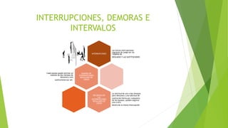Este documento describe las reglas y regulaciones relacionadas con interrupciones, sustituciones y el rol del líbero en el voleibol. Las únicas interrupciones regulares son los tiempos de descanso y las sustituciones. Cada equipo puede solicitar hasta dos tiempos de descanso y seis sustituciones por set. El líbero debe usar un uniforme diferente y solo puede completar ataques cuando está fuera de su zona de frente. El cuerpo arbitral está compuesto por el árbitro principal, árbitro asistente, anotador