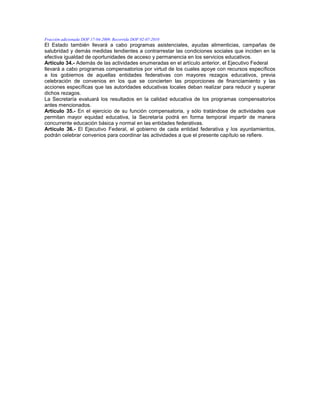 Este documento describe las medidas que las autoridades educativas deben tomar para establecer la equidad en la educación. Estas incluyen asignar recursos de mejor calidad a las escuelas en zonas marginadas, desarrollar programas de apoyo para maestros en áreas aisladas, y otorgar becas a estudiantes en situaciones económicas desventajosas. También se enumeran diversos programas como centros de desarrollo infantil, educación a distancia, y campañas educativas comunitarias, con el fin de mejorar el ac
