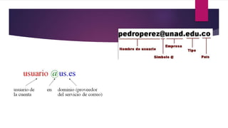 Este documento habla sobre el correo electrónico y sus características. Explica que el correo electrónico es el servicio más tradicional y utilizado en Internet, y que se caracteriza por su rapidez y bajo costo en comparación con otros medios de comunicación. También describe los componentes básicos de una dirección de correo electrónico y los diferentes tipos de archivos que se pueden enviar a través de correo electrónico.