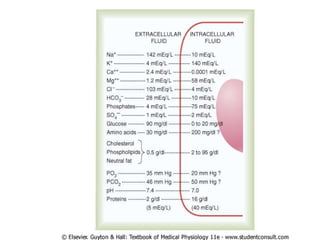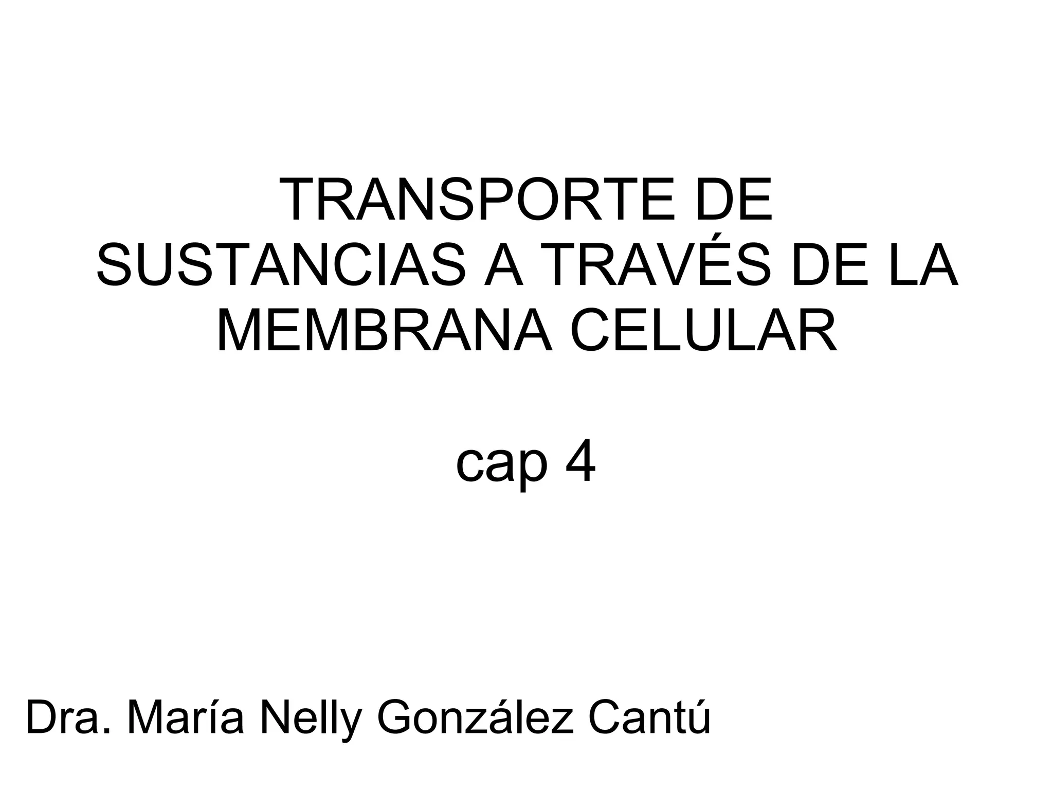 El documento resume los principales mecanismos de transporte de sustancias a través de la membrana celular, incluyendo la difusión simple, difusión facilitada, transporte activo primario y secundario. Describe factores como la presión osmótica y la osmolaridad que afectan la velocidad de difusión, así como bombas iónicas clave como la bomba sodio-potasio y la bomba de calcio.