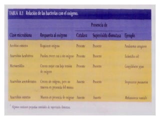 Este documento describe los requerimientos fundamentales para el crecimiento microbiano, incluyendo requerimientos físicos como temperatura, pH, actividad de agua y presión osmótica, así como requerimientos químicos como carbono, nitrógeno, azufre, fósforo, oligoelementos y oxígeno. Explica cómo cada uno de estos factores afecta el crecimiento de las poblaciones microbianas y clasifica los microorganismos según sus preferencias de temperatura, pH y tolerancia a la sal.