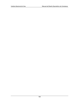 Este documento presenta los procedimientos y criterios generales para el diseño de intersecciones viales a nivel y desnivel. Explica que el diseño de una intersección involucra estudios de tránsito, formulación de alternativas, selección de la mejor alternativa y diseño definitivo. Luego describe criterios como priorizar los movimientos principales, simplicidad, visibilidad, perpendicularidad y previsión. Finalmente presenta esquemas y criterios básicos para diseñar intersecciones en T, en cruz y elementos como carriles de cambio de vel