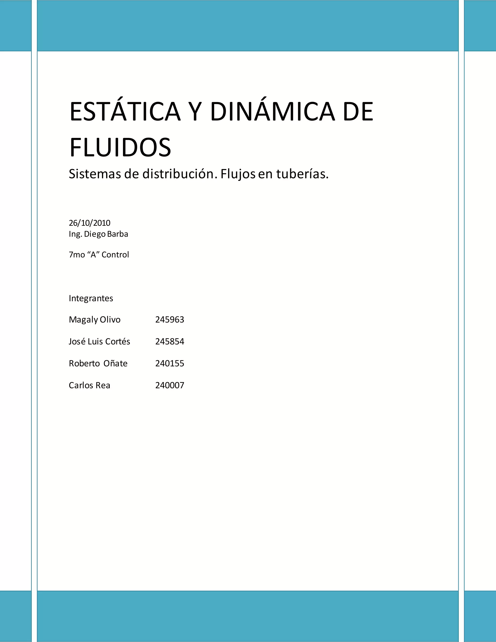Este documento presenta conceptos fundamentales sobre flujo de fluidos en tuberías, incluyendo: 1) definiciones de términos como línea piezométrica, tubo piezométrico y línea de energía; 2) la ecuación de continuidad y ecuación de energía; y 3) ecuaciones como la de Poiseuille, Darcy-Weisbach y Manning para calcular pérdidas de carga en función del caudal. También describe clasificaciones de sistemas de tuberías y conceptos como flujo permanente, uniforme y no