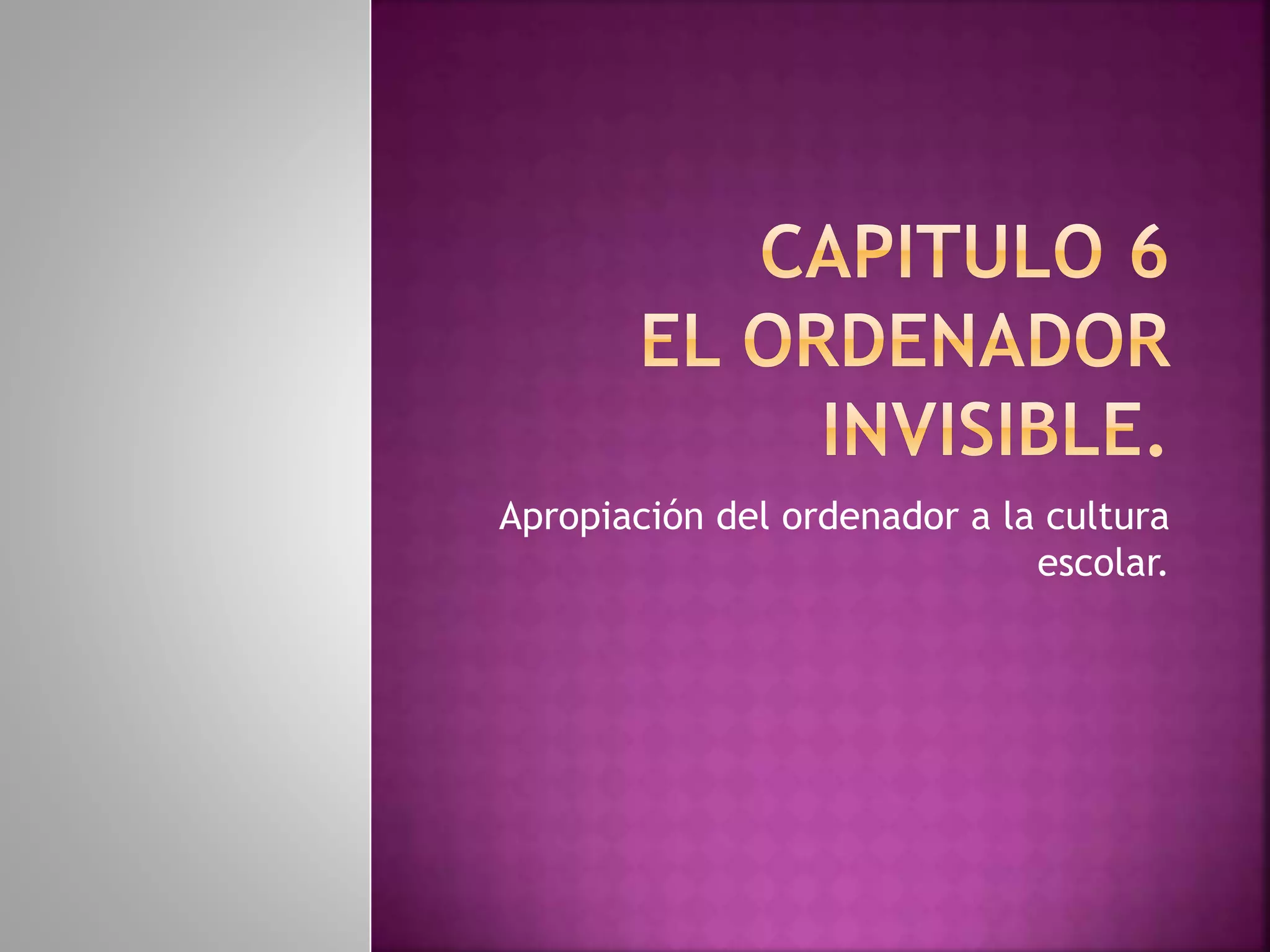 La apropiación de la tecnología en la escuela genera sorpresa al principio debido a la novedad de las computadoras, pero con el uso común se vuelven invisibles y la atención se centra más en las tareas que en las máquinas mismas. Es importante considerar la complejidad de incorporar la tecnología en la escuela de manera equilibrada, con controles que permitan su uso para mejorar la enseñanza y la comunicación entre estudiantes.