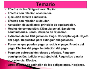 Los principales efectos de las obligaciones son: