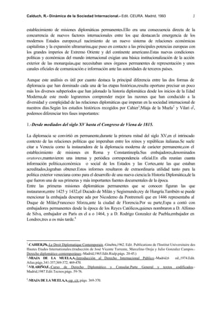 Este documento describe la evolución histórica de la diplomacia desde la antigüedad hasta la actualidad. Se divide la historia en dos grandes períodos: desde la antigüedad hasta el siglo XV, cuando la diplomacia era ambulante y temporal; y desde el siglo XV hasta la actualidad, cuando la diplomacia se convirtió en permanente debido a cambios en la sociedad internacional. También analiza tres fases clave dentro del segundo período: desde mediados del siglo XV hasta 1815, cuando se generalizó la diplomacia permanente; desde 1815 hasta