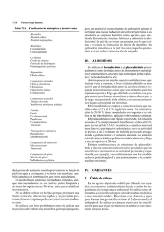 Este documento describe diferentes tipos de antisépticos y sus usos. Discute brevemente los principios generales de la antisepsia y clasifica los antisépticos en categorías como alcoholes, aldehídos, oxidantes, biguanidas y compuestos clorados. Luego procede a describir los usos y propiedades de los alcoholes, aldehídos y oxidantes como antisépticos comunes.