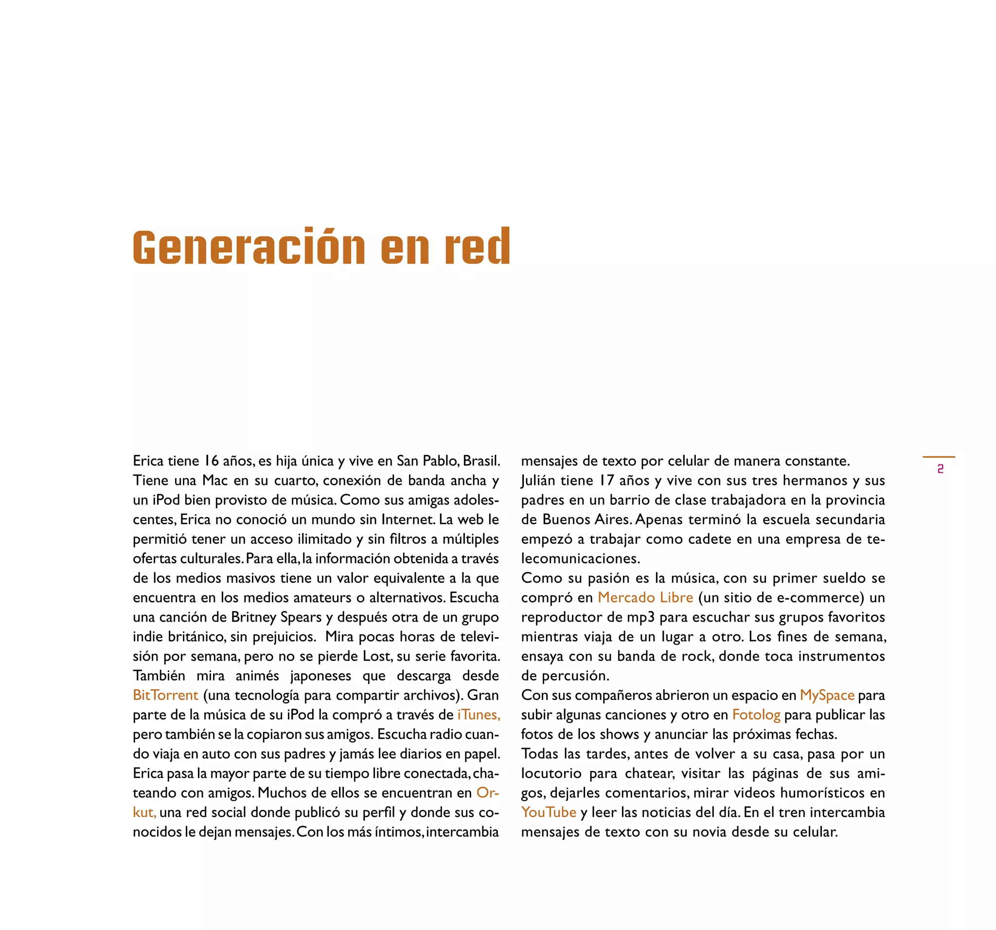 1) Erica y Julián son parte de la generación en red (Net Gen), que aprende, piensa, compra y se relaciona de manera diferente a las generaciones anteriores gracias al uso extensivo de Internet y las redes sociales.