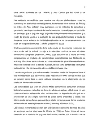 1. La fermentación de la leche es uno de los métodos más antiguos utilizados por el hombre para conservar los componentes nutritivos de la leche, un producto altamente perecedero. La fermentación de la leche se originó hace miles de años en el Oriente Medio y la India, donde se consumían leches fermentadas como parte de la dieta diaria.