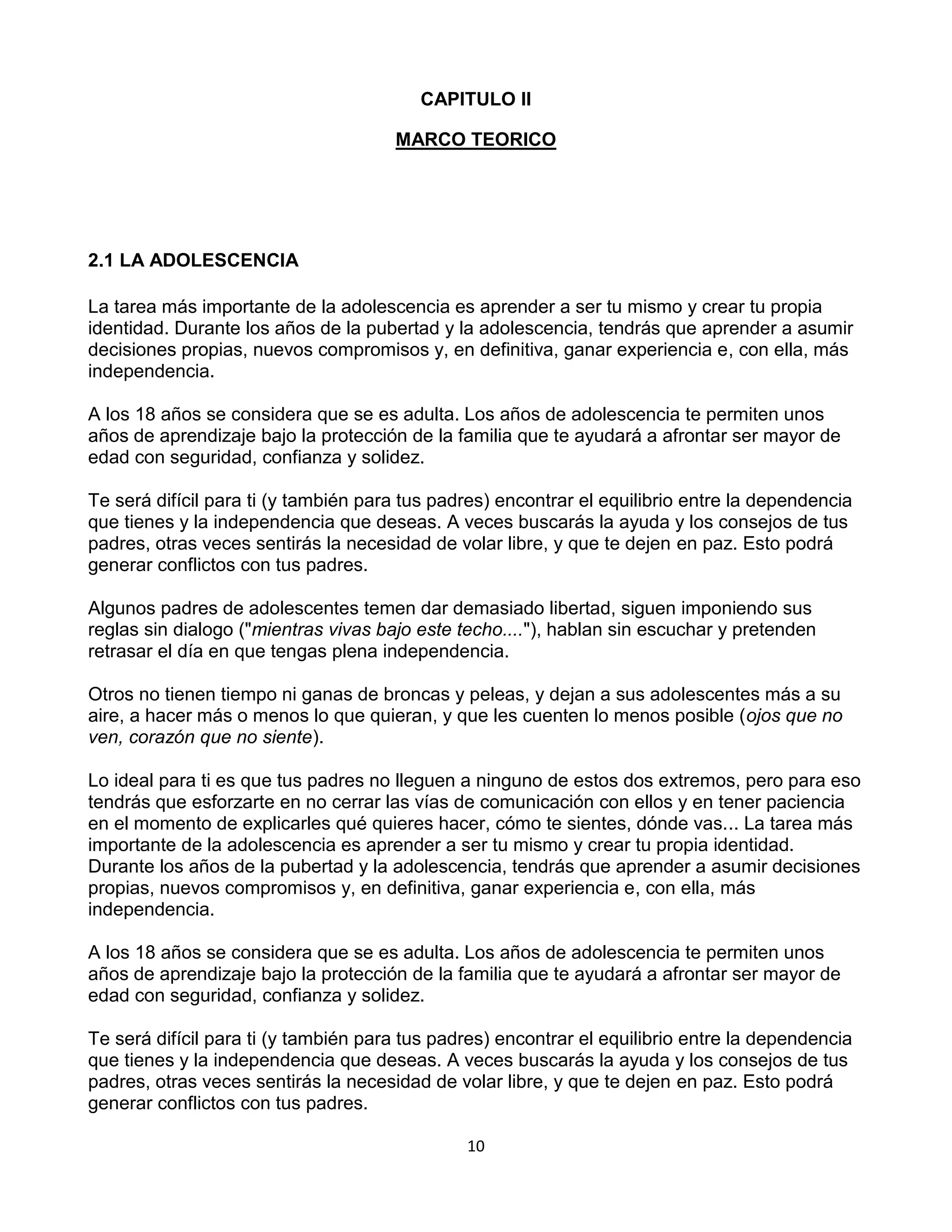 El documento habla sobre los cambios que ocurren durante la adolescencia. Menciona que la adolescencia trae cambios físicos, psicológicos y en la personalidad del individuo. Los cambios físicos incluyen el desarrollo de los órganos sexuales y otras transformaciones del cuerpo. Los cambios psicológicos incluyen la búsqueda de independencia y la influencia de los pares. La personalidad comienza a definirse a medida que el adolescente explora su identidad.