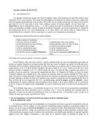 Este documento resume el capítulo 4 del libro "Mariología" que trata sobre María, la madre de Jesús. Primero presenta al autor del Cuarto Evangelio, Juan, y luego analiza dos pasajes bíblicos relacionados con María: 1) Juan 1:12-13, donde argumenta que este pasaje se refiere a la concepción virginal de Jesús, no a los cristianos. 2) Juan 2:1-11, el relato de las bodas de Caná, donde María juega un papel importante al pedirle a Jesús que ayude por la
