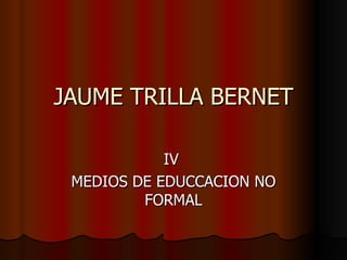 El documento describe varios medios y tecnologías de educación no formal. Estos incluyen medios itinerantes que llevan recursos educativos a las comunidades, el uso de medios de comunicación como la radio y la televisión con fines educativos, y las nuevas tecnologías como ordenadores, sistemas hipermedia e internet para difundir información y permitir la enseñanza a distancia.