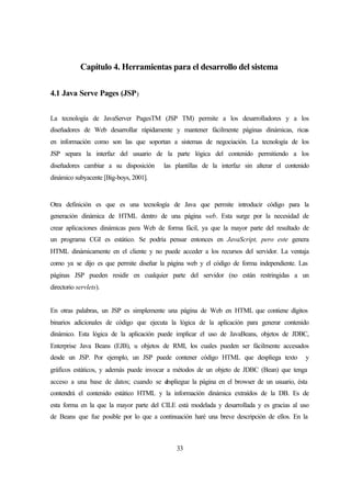 Este documento describe las herramientas JavaServer Pages (JSP) y Java Media Framework (JMF). JSP permite crear páginas web dinámicas separando la interfaz de usuario de la lógica de la aplicación, mientras que JMF agrega funcionalidad multimedia a aplicaciones Java. También compara JSP con otras tecnologías como ASP y Servlets, y proporciona ejemplos de aplicaciones como motores de búsqueda y tiendas virtuales que pueden desarrollarse con JSP.