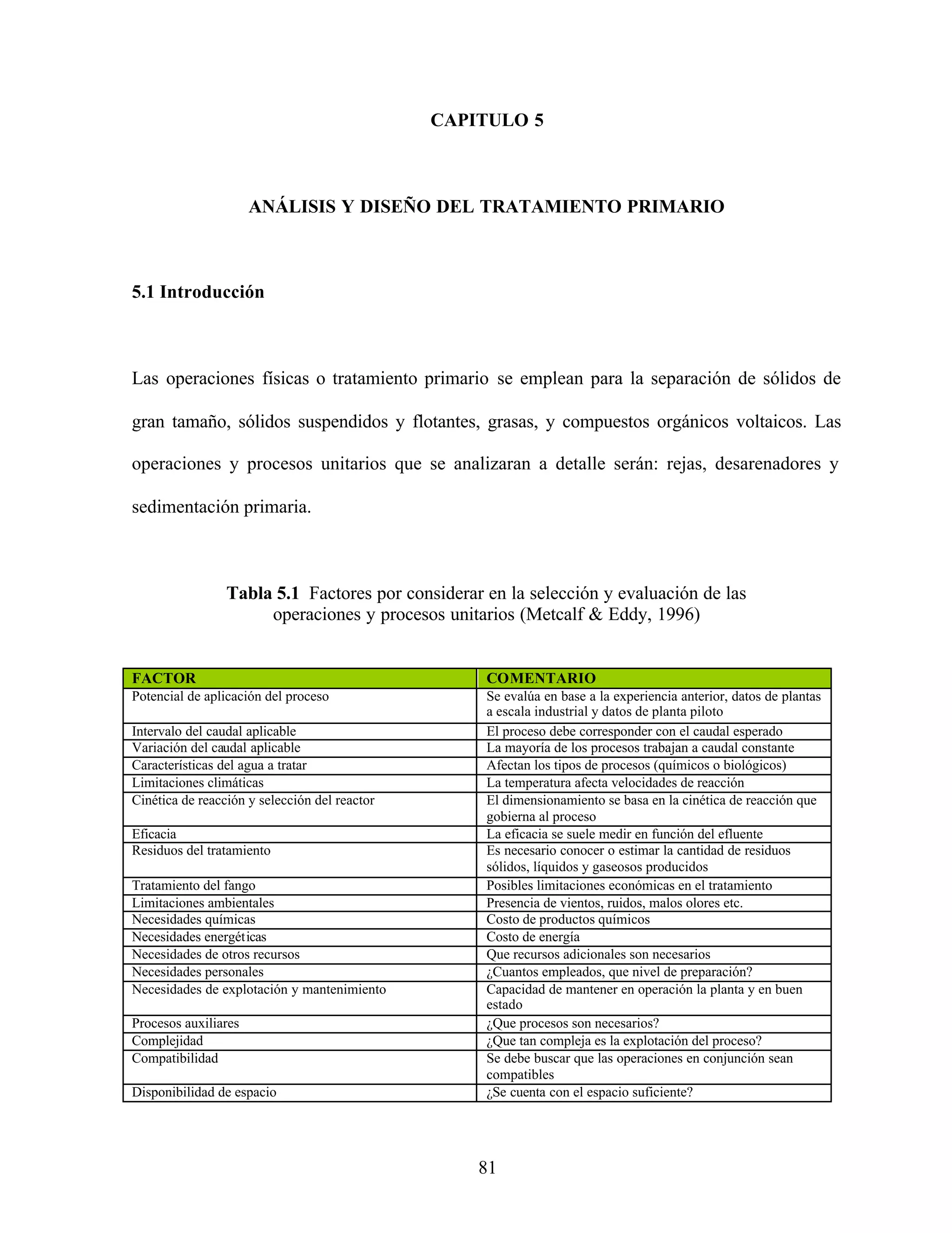 Este documento describe los procesos de tratamiento primario para aguas residuales. Se analizan las rejas de limpieza mecánica, incluyendo sus características, ventajas y desventajas de diferentes tipos. También se presentan ecuaciones para calcular las pérdidas de carga a través de las rejas y parámetros de diseño como la abertura, velocidad y dimensiones del canal.