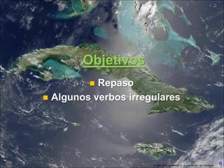 Este documento presenta un capítulo sobre verbos irregulares en español. Incluye ejercicios de repaso sobre verbos en el pasado y la primera persona del singular. También presenta verbos irregulares como "dar", "hacer", "salir", "ver", y "conocer" para que los estudiantes completen las formas y creen oraciones con ellos.