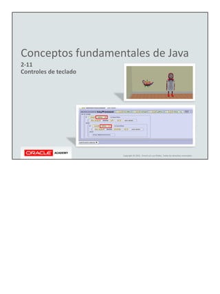 El documento habla sobre la creación de animaciones interactivas en las que el usuario puede controlar lo que ocurre mediante eventos como presionar teclas o hacer clic. Explica cómo codificar diferentes eventos y tener cuidado de no crear eventos contradictorios. También cubre temas como la transferencia de código entre animaciones.