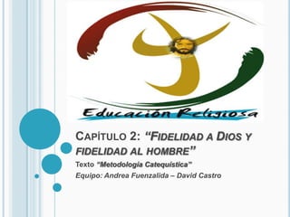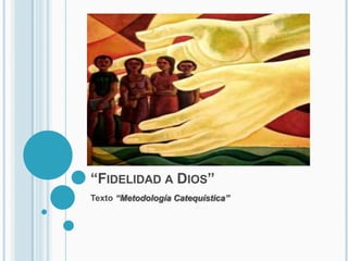 El documento describe los principios fundamentales de la metodología catequística cristocéntrica, incluyendo la importancia de la presencia de Jesucristo, la mediación de la Palabra de Dios a través de la enseñanza, celebración, servicio y relación con las realidades humanas, y el papel del magisterio y la comunidad. También discute conceptos como la oración, el testimonio, los símbolos, el diálogo, el juego, los sentidos, la voluntad, la memoria, la libertad, la motivación