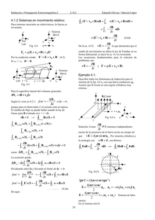 El documento aborda la inducción electromagnética y las corrientes variables, explicando la ley de Faraday y su relación con el movimiento relativo entre imanes y bobinas. Se detallan la variación del flujo magnético, la fuerza electromotriz inducida, y cómo estos conceptos se aplican a sistemas en reposo y en movimiento. Además, se presentan ejemplos y ecuaciones relevantes para entender los fenómenos de inducción en distintos contextos.