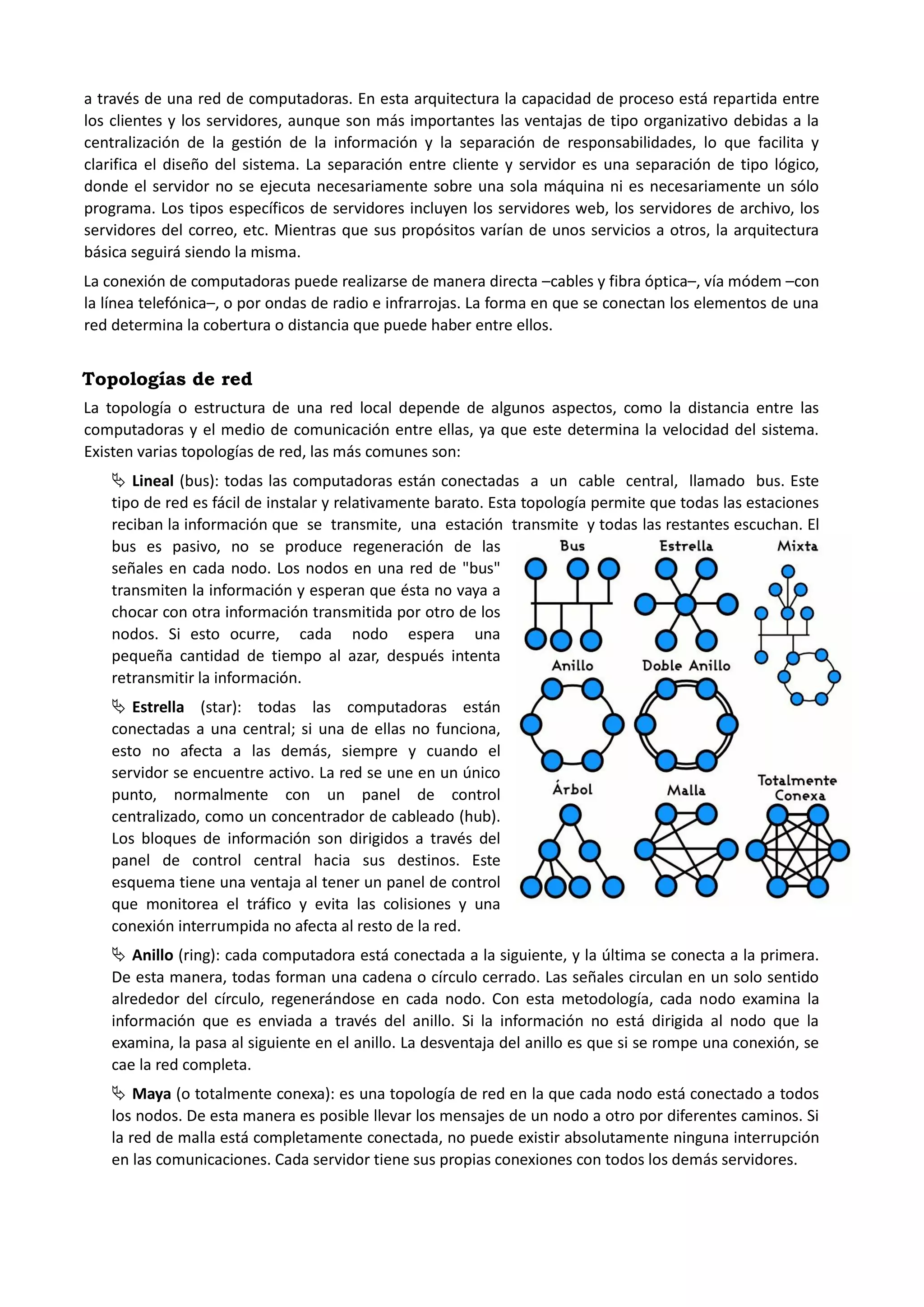 El documento describe la historia y evolución de Internet. Comenzó en 1969 como ARPANET, una red de 4 universidades en EE.UU. para compartir recursos. Desde entonces, Internet ha crecido para conectar millones de redes alrededor del mundo, incluyendo redes personales (PAN), locales (LAN), metropolitanas (MAN) y amplias (WAN). Aunque la World Wide Web popularizó Internet, ofrece muchos otros servicios como correo electrónico, mensajería y transmisión de archivos y voz.