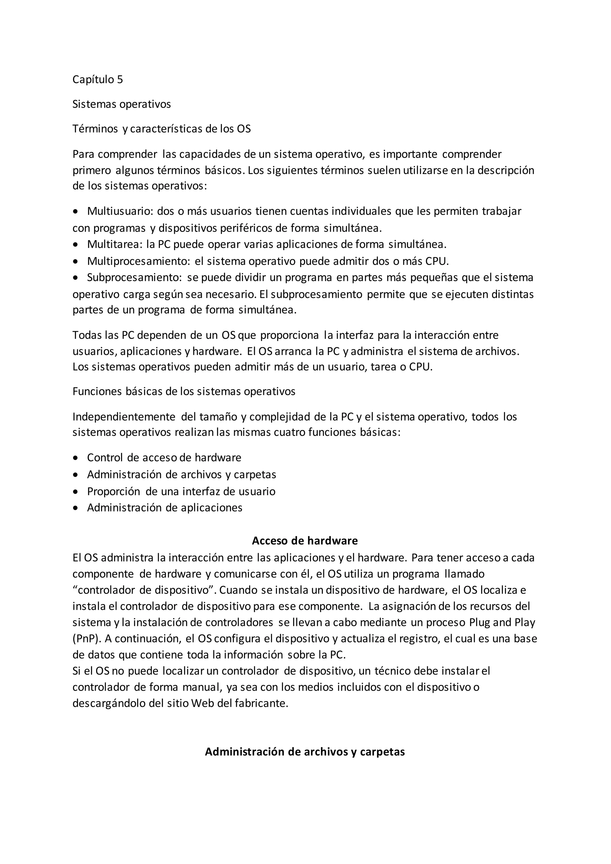 Este documento describe los conceptos básicos de los sistemas operativos, incluyendo sus funciones principales como la administración de hardware, archivos y aplicaciones. También discute los diferentes tipos de sistemas operativos como de escritorio y de red, así como ejemplos populares como Windows, Mac OS y Linux. Finalmente, cubre temas como la actualización y migración de sistemas operativos.