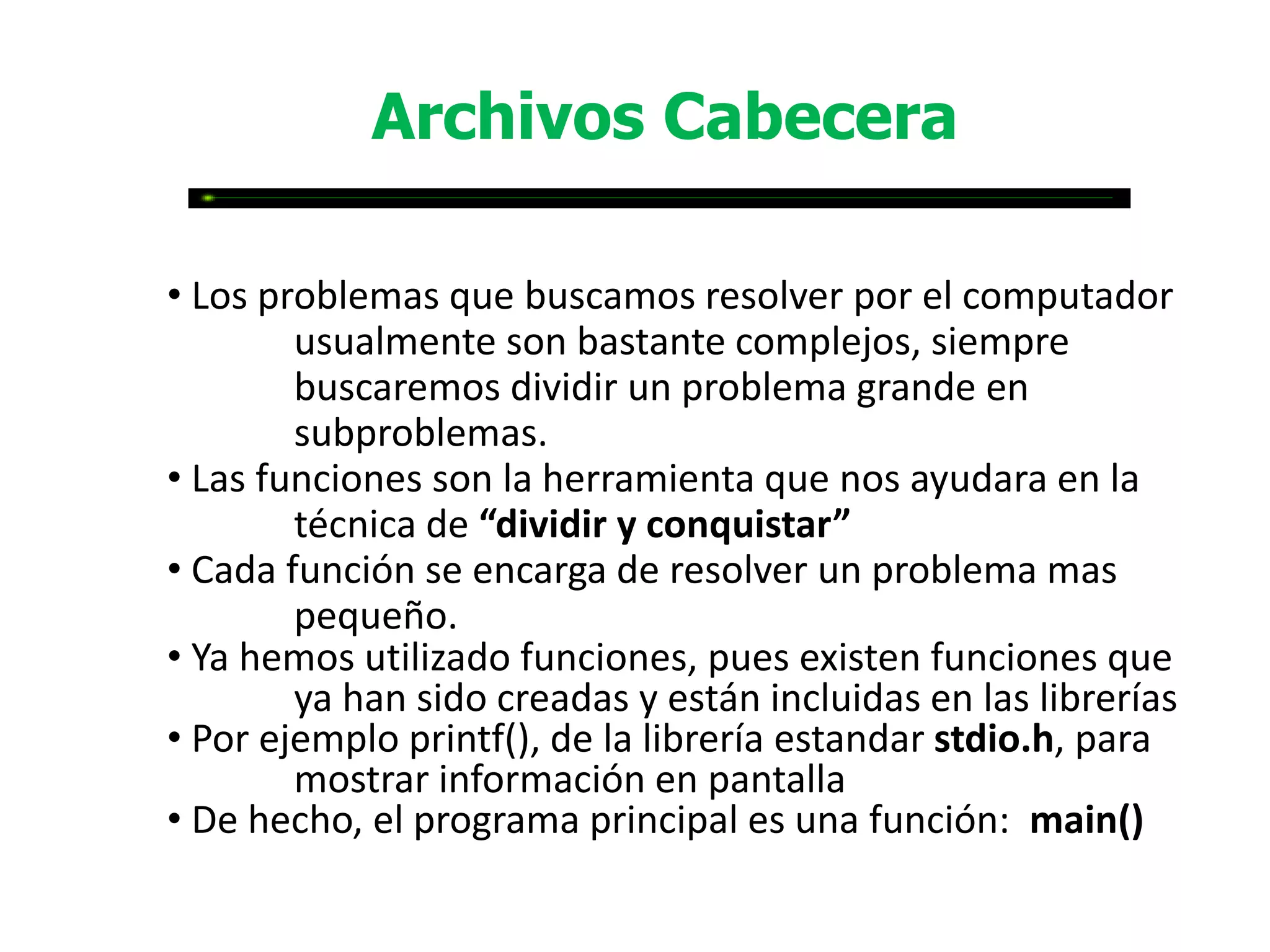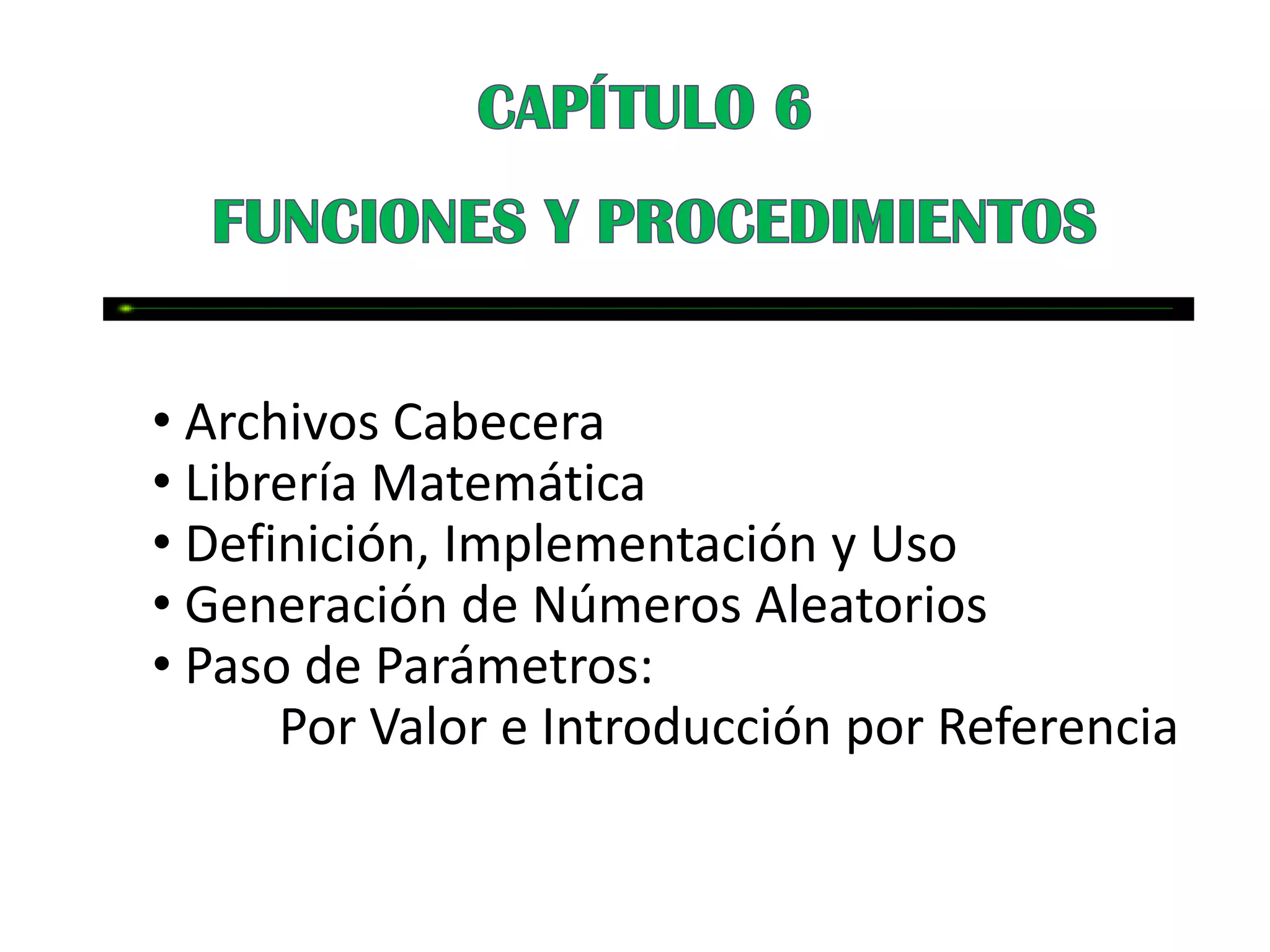 El documento describe la implementación y uso de funciones en C. Explica cómo definir funciones, pasar parámetros, tipos de retorno y cómo generar números aleatorios. También cubre la librería matemática stdlib.h y funciones matemáticas como factorial y conversión de Celsius a Fahrenheit.