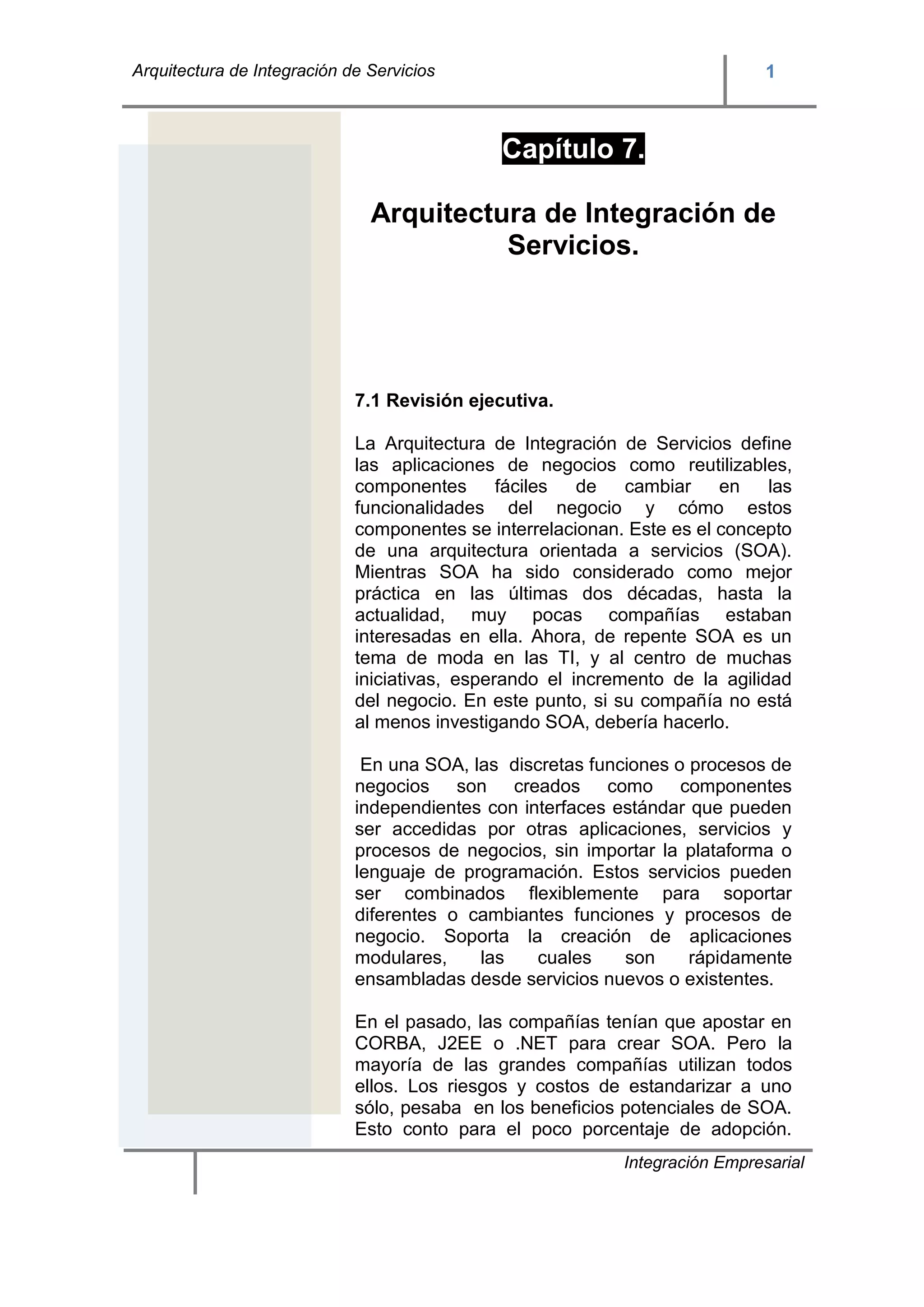 El documento describe los beneficios de una arquitectura orientada a servicios (SOA). SOA permite la agilidad del negocio al maximizar la reutilización de recursos existentes y minimizar el tiempo y costo de desarrollar nuevas aplicaciones a través del ensamblaje de componentes. También proporciona mayor retorno de inversión al reutilizar funcionalidades existentes, permite agilidad de TI al hacer que los servicios sean independientes de la tecnología subyacente, y reduce costos a través de la estandarización y prue