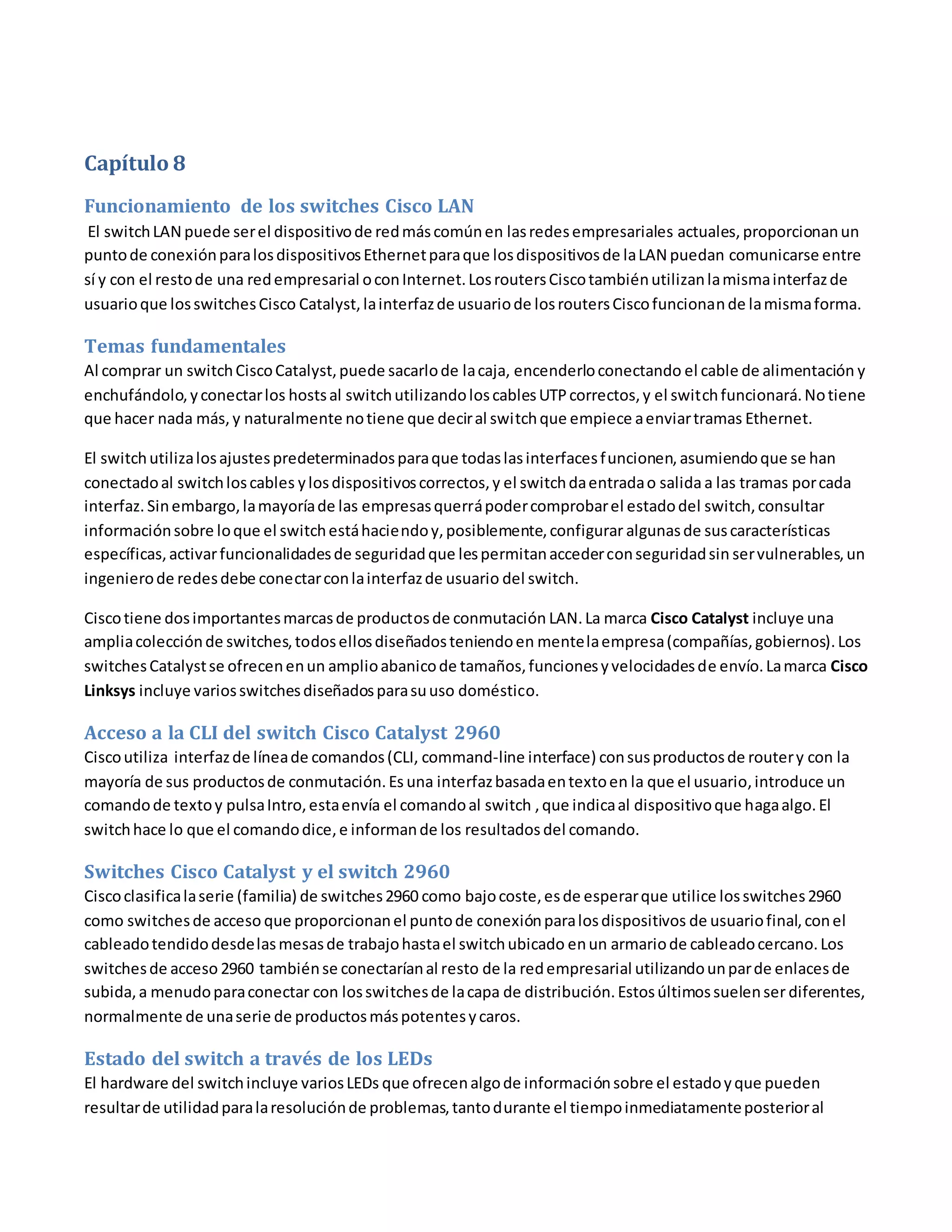 1) Los switches Cisco Catalyst son dispositivos de conmutación comúnmente usados en redes empresariales para conectar dispositivos Ethernet.