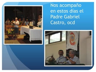 Este documento describe unos días de retiro espiritual. El Padre Gabriel Castro acompañó a los participantes para reflexionar sobre vivir el presente y buscar el Reino de Dios. El retiro ofreció una experiencia de búsqueda personal y encuentros espirituales siguiendo las enseñanzas de Jesús y Santa Teresa.